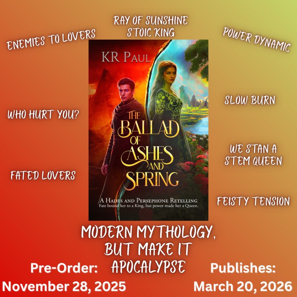 The Ballad of Ashes and Spring: A Hades and Persephone Retelling will publish on March 20, 2026. Pre-orders open NOW!